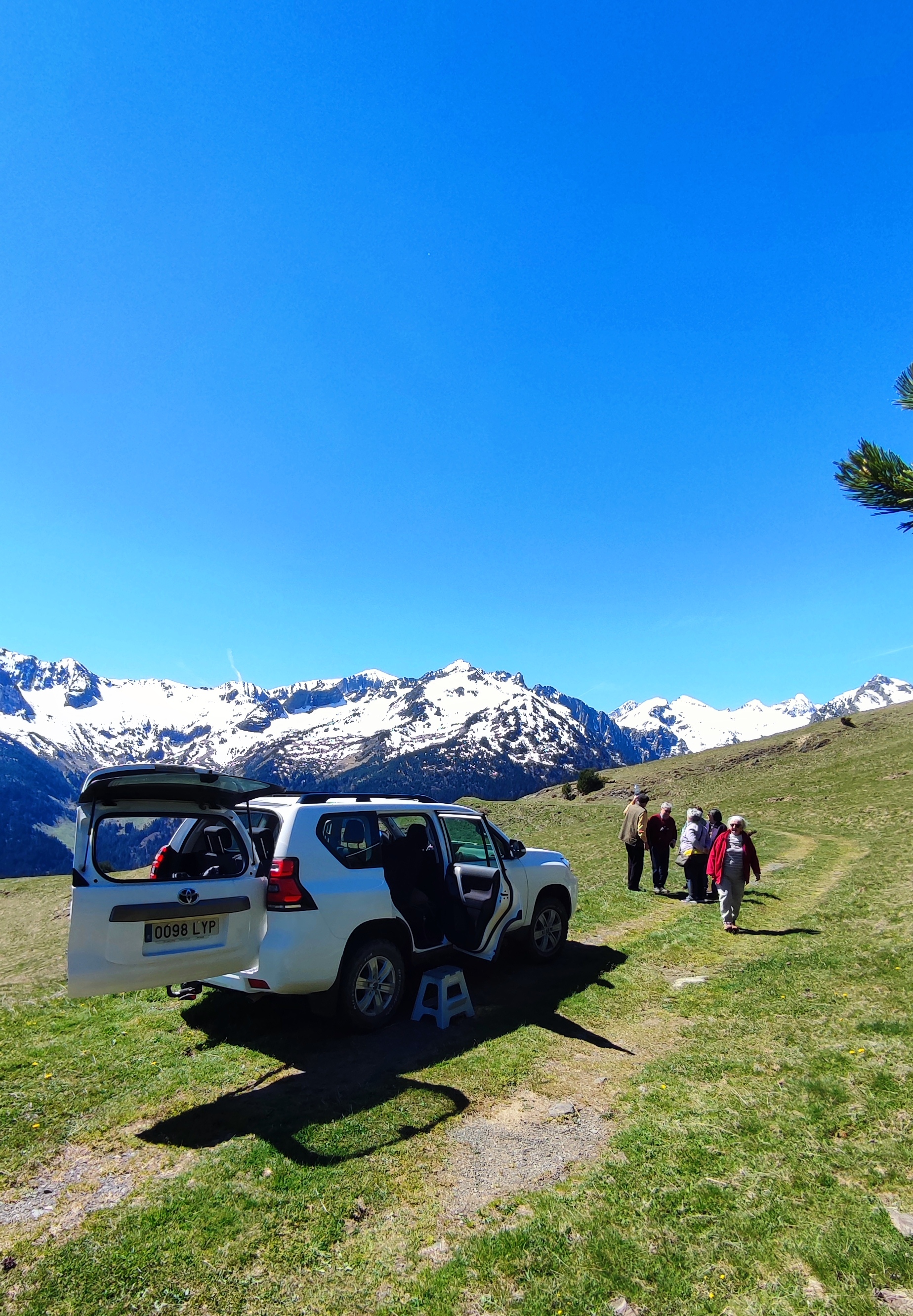 Descubre paisajes remotos, fauna autóctona, lugares secretos, pueblos llenos de historia y la riqueza natural de los Pirineos en un Land Cruiser 4×4. Cada ruta está diseñada para sorprenderos: combinamos la interpretación del patrimonio natural, cultural y de la fauna con paradas estratégicas para hacer pequeñas excursiones y vivir el territorio desde adentro. Durante el recorrido aprox. 4 horas con opción de 6 y 8 horas. Visitamos lugares encantadores de difícil acceso. Compartimos anécdotas, tradiciones y arquitectura local. Observamos flora, fauna y elementos patrimoniales únicos. Según la época del año, en los recorridos de 6 a 8 horas, ofrecemos la posibilidad de almorzar en una auténtica cabaña de montaña o refugio. Área de operaciones: Valle de Arán y disponible: Pallars, Ribagorça, Vall de Boí y Midi-Pyrénées Nos adaptamos a vuestro ritmo y a vuestros intereses.
